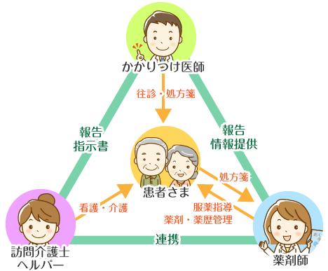 かかりつけの医師に、薬剤師の在宅訪問についての同意をしてもらいます。 - ご訪問・服薬支援